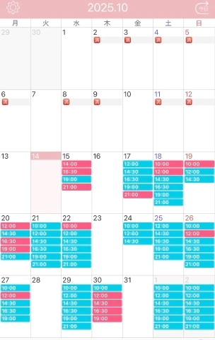 【最新のご案内可能枠】※ピンクが🈵です