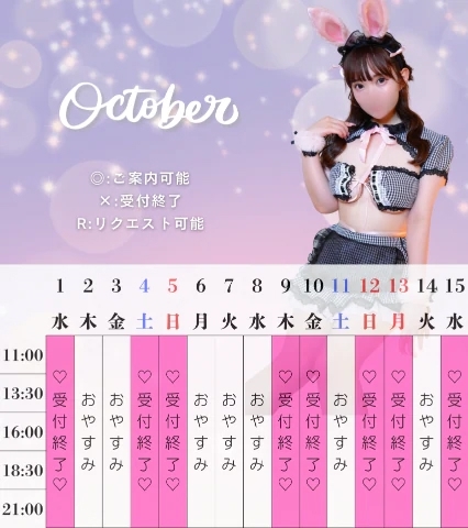 ご予約いただいた日を出勤確定にして、シフトを考えるので、お早めのお問い合わせが嬉しいです🤍🪄