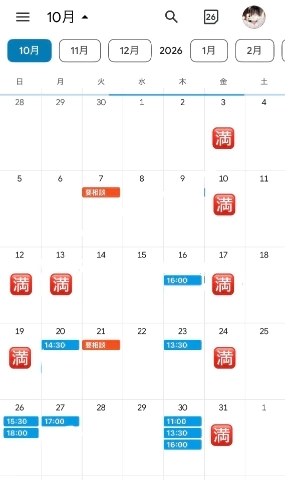 次回空き枠10月16日 16:00〜/
