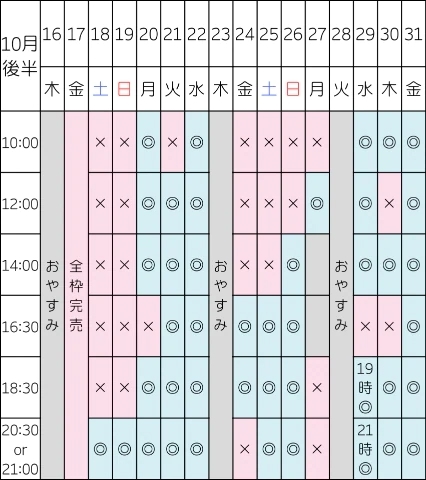 次回空き¦18日20:30