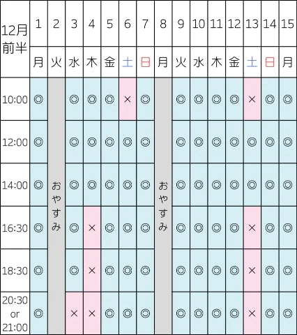 特に10:00/12:00の早いお時間帯はご案内が難しくなることもございます🙇🏻♀️