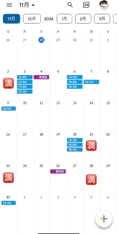 次回空き枠11月3日 12:00〜/14:30〜/17:00〜/19:30〜