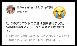 はんなの公式LINE凍結していて
