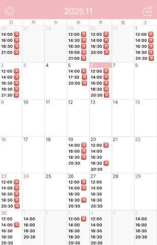 (11時枠可能日⇒4日、7日、11日、21日、25日、28日)