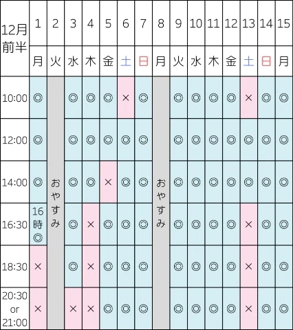 特に10:00/12:00の早いお時間帯はご案内が難しくなることもございます🙇🏻♀️