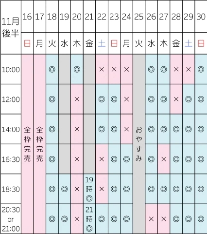 明日の空き枠はこちらです👇