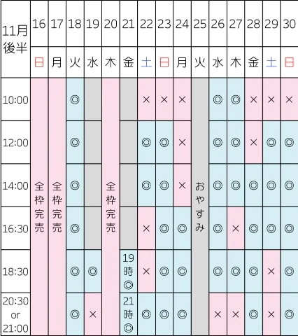 本日の空き枠はこちらです👇