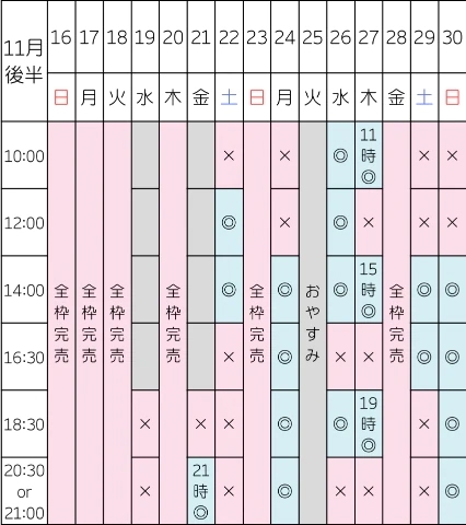 ・ご希望日時(10:00/12:00/14:00/16:30/18:30/20:30 or 21:00)