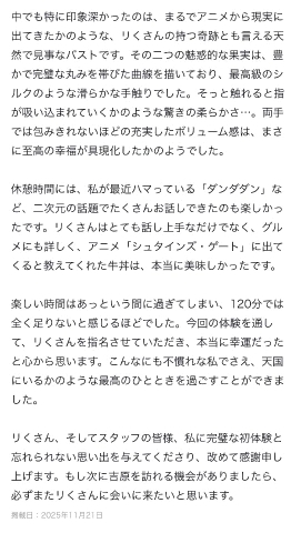 何とも嬉しく詩的で文才溢れるクチコミを頂いたのでご紹介させて下さい♡♡