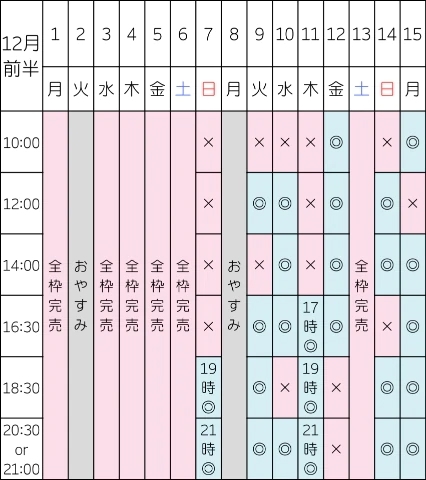 ・ご希望日時(10:00/12:00/14:00/16:30/18:30/20:30 or 21:00)