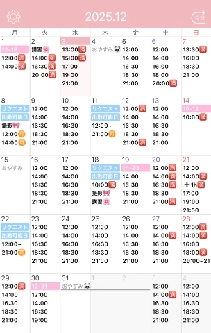 🎀 𝟏𝟐,𝟏月𝐬𝐜𝐡𝐞𝐝𝐮𝐥𝐞 🪄◝✩