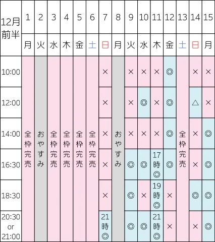 ・ご希望日時(10:00/12:00/14:00/16:30/18:30/20:30 or 21:00)