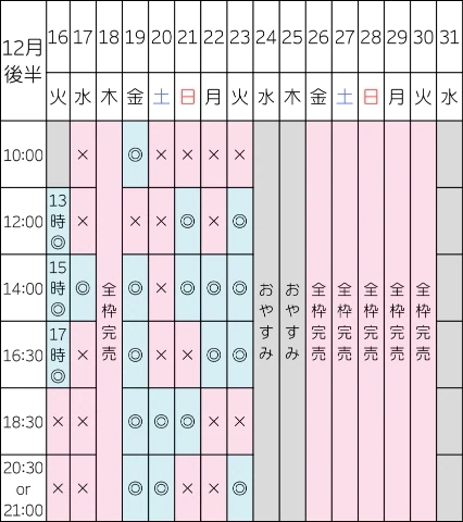 次回の空き枠はこちらです👇