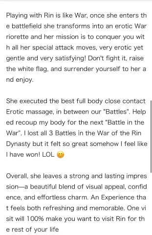 A gentle erotic battle with you, a massage, and a fun conversation. That's because you had prepared for the type of girl in advance and above all, the attitude of enjoying it was wonderful. Even if you don't have the attitude to enjoy Disneyland, even if you stay for hours, even if Mickey Mouse waves and Minnie Mouse hugs, it won't be fun. I wanted the little warrior in me to have the most fun. Of course, I was really looking forward to it because you contacted me even before I met you♡