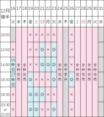 ・ご希望日時(10:00/12:00/14:00/16:30/18:30/20:30 or 21:00)