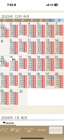 12/27 13:00-1枠のみキャンセル
