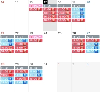 ・ご希望日の日時(11時/13時半/16時/18時半)