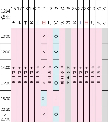 ・ご希望日時(10:00/12:00/14:00/16:30/18:30/20:30 or 21:00)