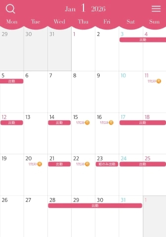 (2月だけ出勤少なめです。ご了承ください。)