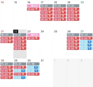 ・ご希望日の日時(11時/13時半/16時/18時半)