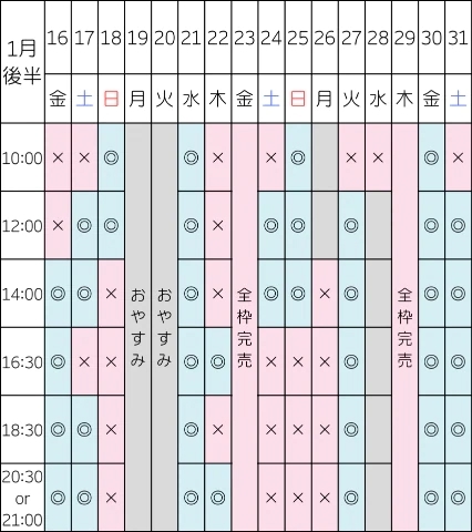 土日祝は特に早い時間帯(10:00/12:00/14:00)が