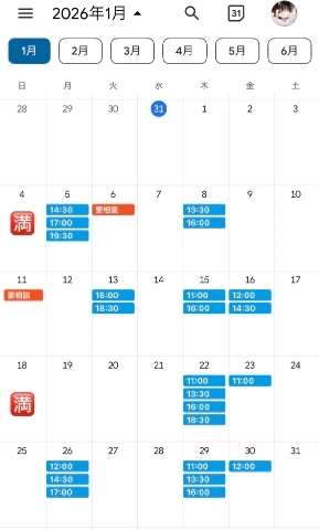 ⬇️直近の空き枠⬇️