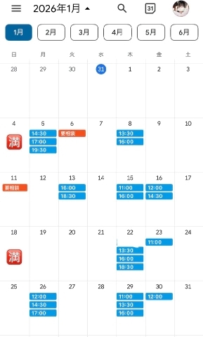 ⬇️直近の空き枠⬇️