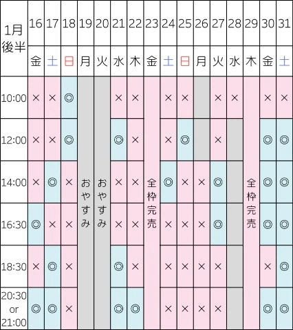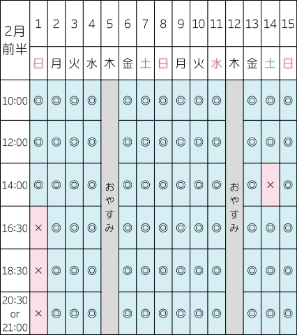 土日祝は特に早い時間帯(10:00/12:00/14:00)が