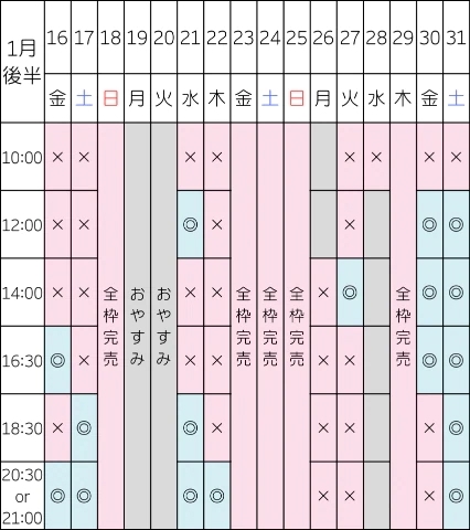 土日祝は特に早い時間帯(10:00/12:00/14:00)が