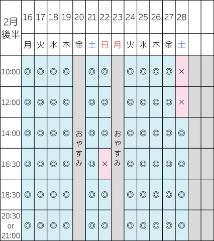 次回の空き枠はこちらです👇