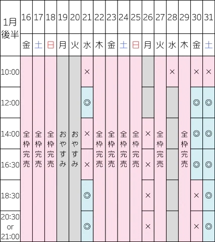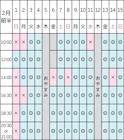 次回の空き枠はこちらです👇