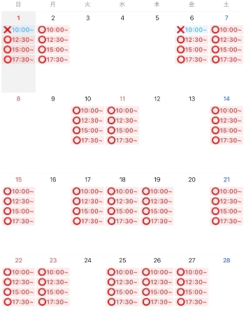 28日(水)10:00~/12:30~/15:00~/17:30~