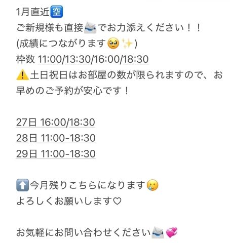 当日でも直接連絡お待ちしてます🌟