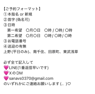 ご予約の際こちらのフォーマットの記入をお願いします!