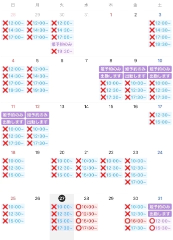 28日(水)10:00~/12:30~/15:00~/17:30~
