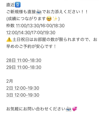 お好きなお時間ご案内可能です(🫵🏻 ᴖ ̫ ᴖ)