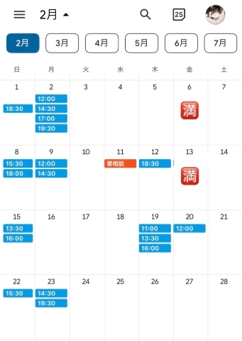 ⬇️直近の空き枠⬇️