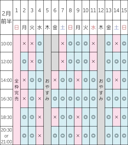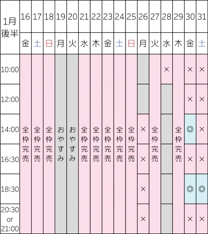 土日祝は特に早い時間帯(10:00/12:00/14:00)が
