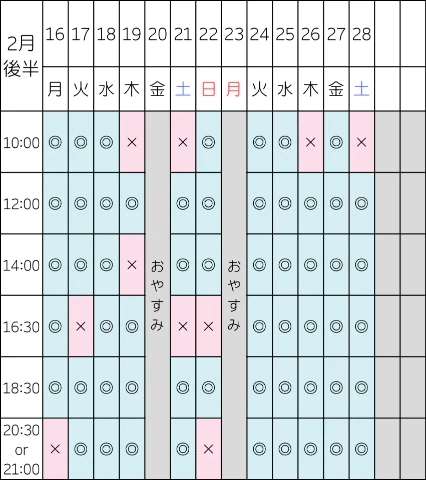 次回の空き枠はこちらです👇