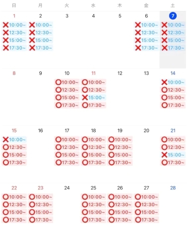 ご案内状況🥰今月はあなたと会えますように☀️