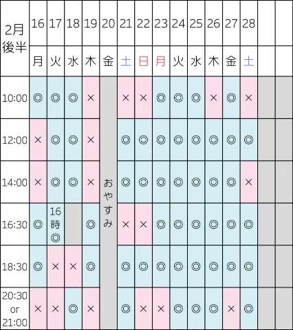 次回の空き枠はこちらです👇
