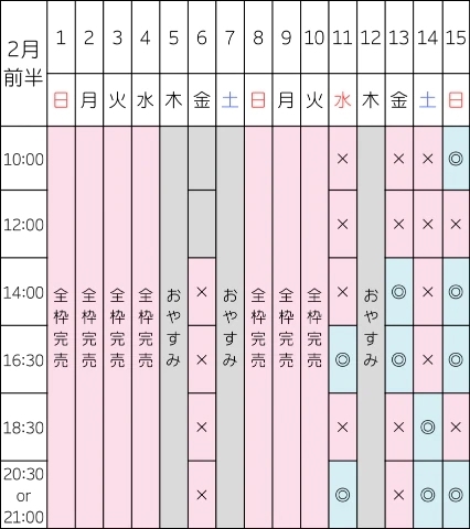 土日祝は特に早い時間帯(10:00/12:00/14:00)が
