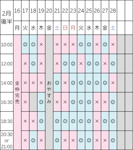 土日祝は特に早い時間帯(10:00/12:00/14:00)が