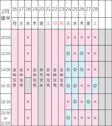 土日祝は特に早い時間帯(10:00/12:00/14:00)が