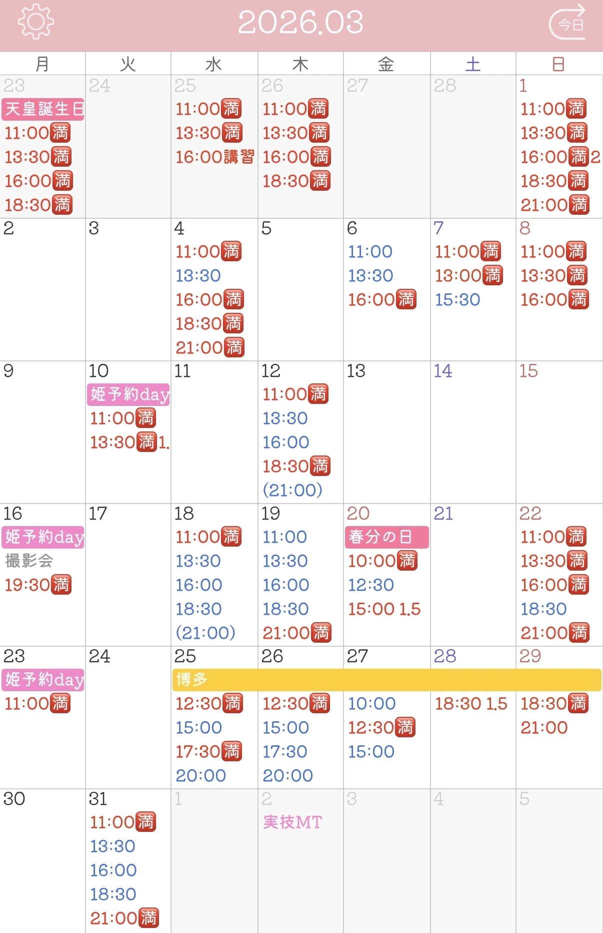 3月の空き枠は以下の通りです🙂↕️💓