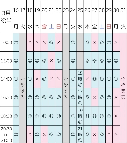 最短の空き枠はこちらです👇