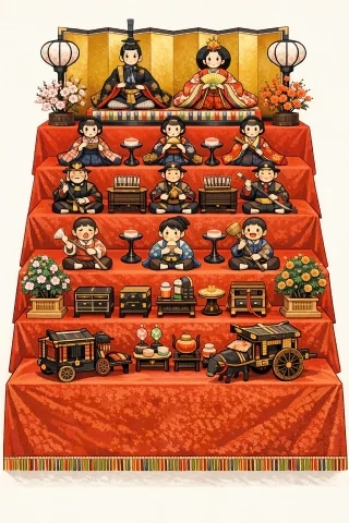 いとこのお家には7段のドデカお雛様が🥹💦