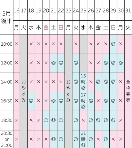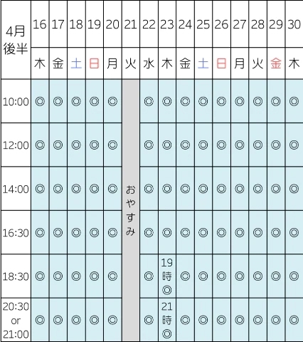 最短の空き枠はこちらです👇