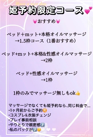 お名前・ご予約日時・お電話番号を送っていただければ姫予約へ切り替えも可能です✨