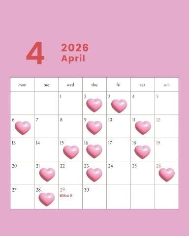 4月のシフトです!ハートが出勤になります👍🏻